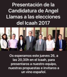 Jueves 26 a las 20:30 h presentacion de la candidatura ANGEL LLAMAS/ALTODO a elecciones ICAAH en la cafeteria del